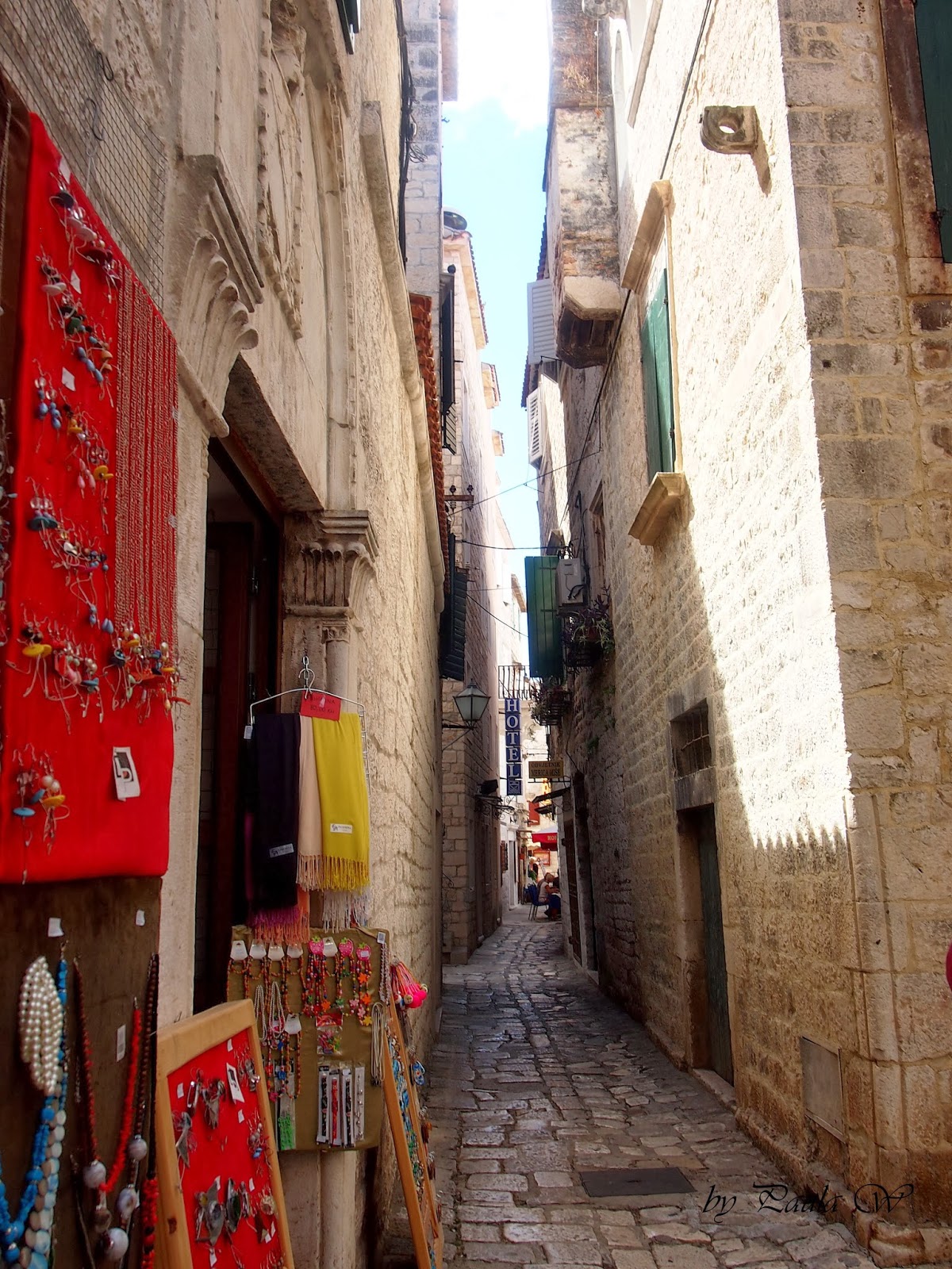 Zaparkowaliśmy auto na parkingu przy samym porcie - 5kun za godzinę. Naszym zdaniem 3h w zupełności wystarczają na zwiedzanie oraz na obiad.Słynny targ w Trogirze, naszym zdaniem okazał się przereklamowany. Sporo regionalnych produktów (przede wszystkim oliwa z oliwek, wina, lawenda) i owoców, ale każdy, z każdej strony naskakuje i przekrzykuje się nawzajem. Ceny wysokie, także nie warto się napalać na okazje.